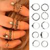 7 Pcs Vintage Women Hollow Carving Lotus Flower Waterdrop Knuckle Midi Rings Set