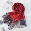 New Checkered Silk Scarf for Women, Solid Color Sunscreen Shawl Gold Thread Mulberry Silk Scarf for Women