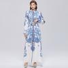 Spring Autumn Women Vintage Designer Print Single Breasted Long Maxi Holiday Beach Dresses With Belt