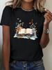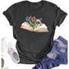 Cat with Book Print T Shirt Unisex Floral Wildflower T-Shirt Summer Short Sleeves T-Shirts Book Lover Literature FeUnisex Tops Tops Unisex
