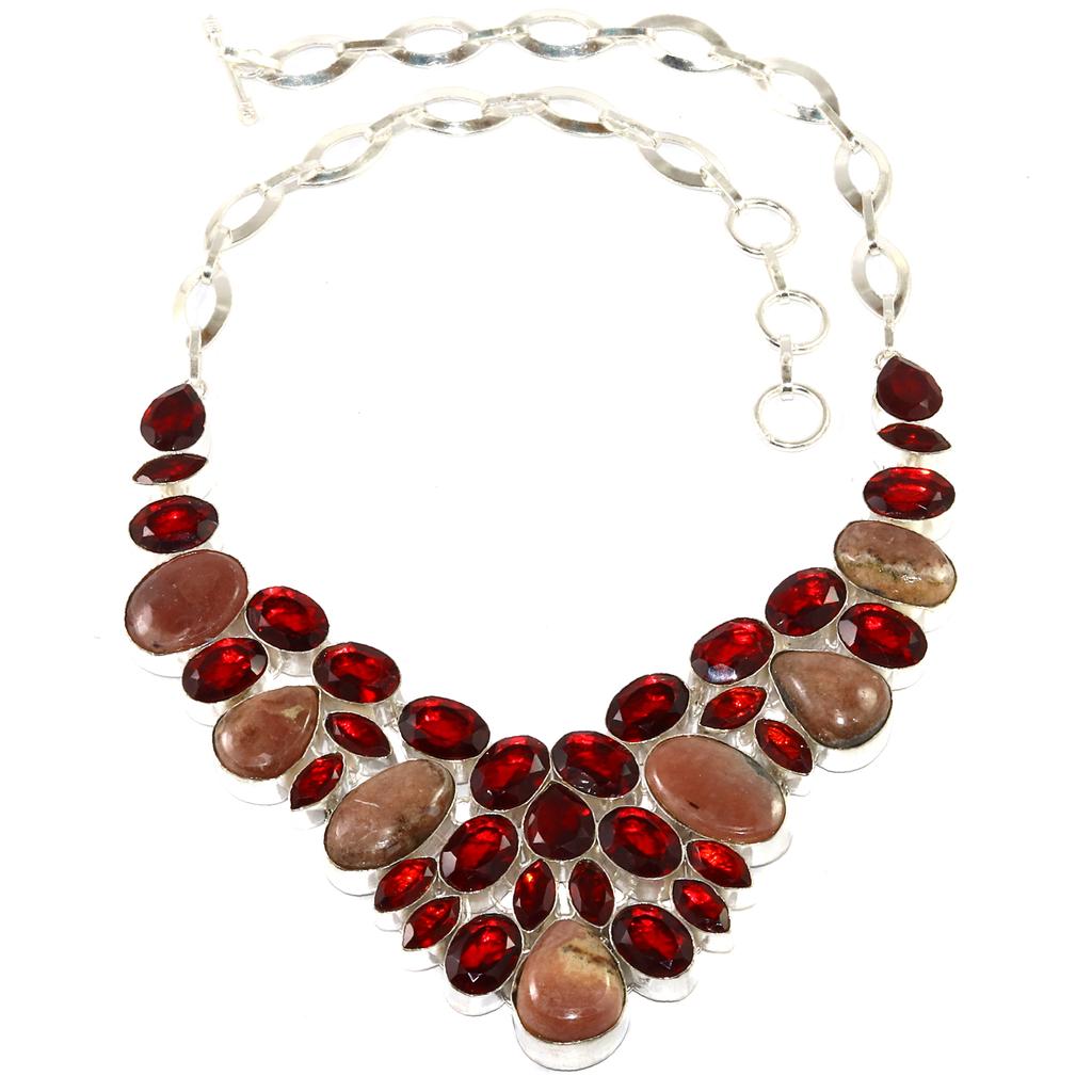 Rhodochrosorite Garnet Gemstone Silver Jewelry Necklace 16-18''