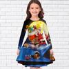 Girl Casual Christmas House Delivery Print Round Neck Long Sleeve Dress Kid Princess Dress
