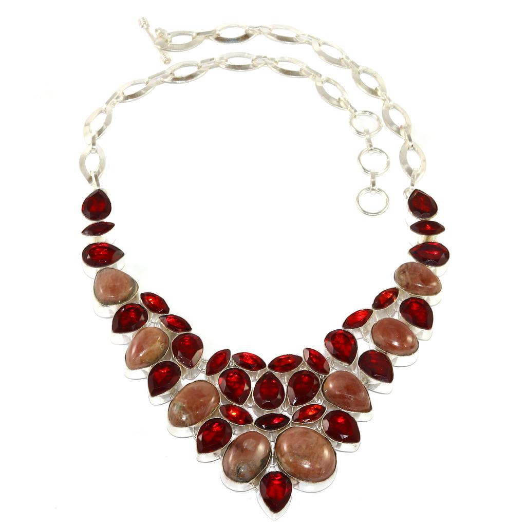 Rhodochrosorite Garnet Gemstone Silver Jewelry Necklace 16-18''
