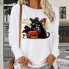 Halloween Long Sleeve T-shirt for Women's Autumn Cute Cat 3D Printed T-shirts Casual Pullover Holiday Top