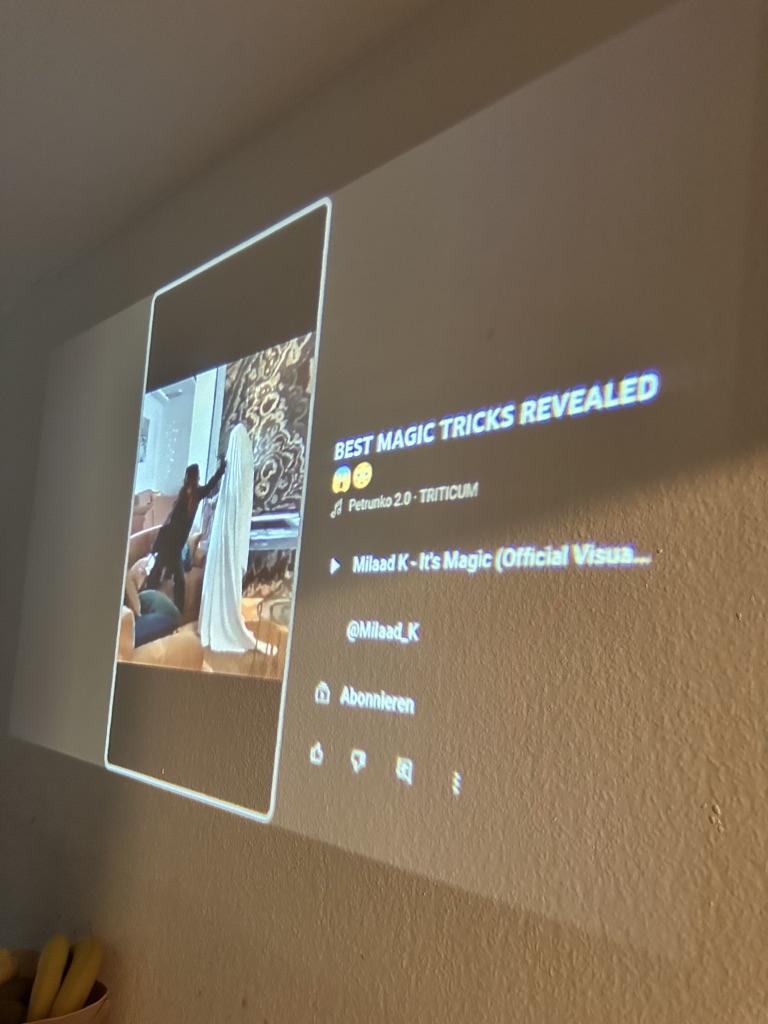 Je to fenomenálne, prakticky je to Smart TV bez obrazovky...projekcia na stenu môže dosiahnuť uhlopriečku 1,8 m zo vzdialenosti 3 m...