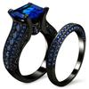 Black Gold Rhinestone Princess Cut Black Or Blue Cz Wedding Engagement Band Bridal Rings Set Size 5 -12