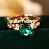 2pcs /Set Luxury Green Blue Stone Crystal Finger Rings For Women Sliver Color Wedding Engagement Bands Jewelry Gifts New
