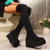 Nové zimné dámske čižmy Módne jednofarebné dámske čižmy s okrúhlou špičkou na super vysokom podpätku Látkový rukáv nad kolená