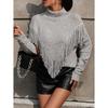 2024 Autumn And Winter New European And American Women'S Loose Tassel Solid Color Knitted Sweater High Neck Sweater