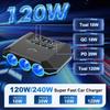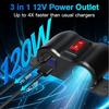 120W 3portový zásuvkový rozdeľovač do autozapaľovača Dvojitá USB nabíjačka na telefón do auta s napájacím adaptérom a displejom napätia predlžovacieho kábla