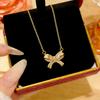 Exquisite Copper Inlaid Zirconium Sweet Bow Pendant Necklace 14K Real Gold Plated Sexy Women Prom Party Necklace Korean Jewelry