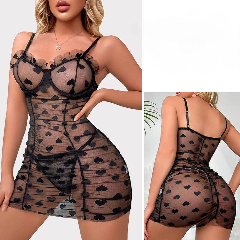 3. Style: This heart-shaped lingerie is made of lace and heart-shaped prints, with ruched hemline design, highlighting the sexy, adding a sense of layering and movement. Adjustable straps ensure a comfortable fit. Dress up for a romantic evening of pillow teasing with your honey!