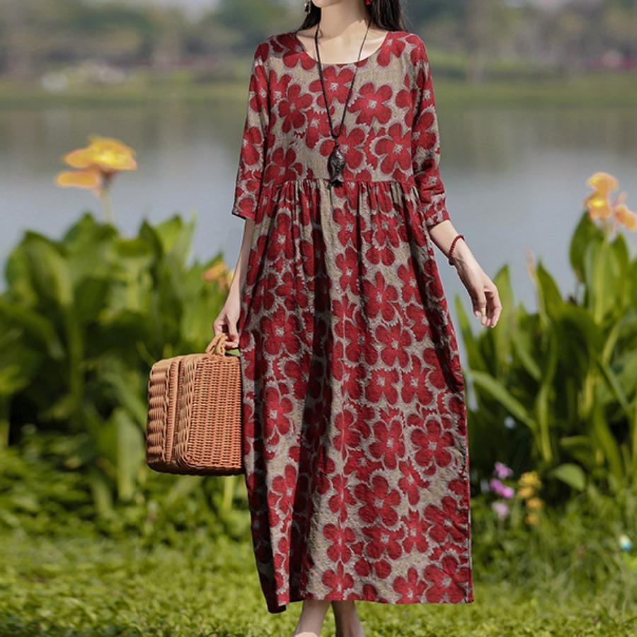 Dámske šaty v etnickom štýle Letné s potlačou veľkých rozmerov nad kolená Dlhé šaty so sedemštvrťovým rukávom
