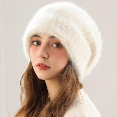 Kórejský dvojvrstvový teplý vlnený pletený klobúk so zamatom, univerzálny zimný módny doplnok pre ženy