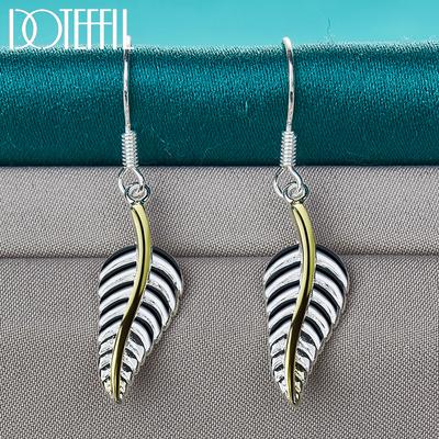 925 Sterling Silver Twisted Leaf Dangling Piercing Earrings Fashion Wedding Jewelry