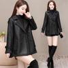 Dámska kožená bunda jeseň zima krátka obojstranný kožený kabát 4XL žena Pridať zamatový teplý kabát z jahňacej vlny PU