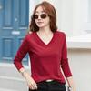 Women's Slim Fit V Neck Long Sleeve T-Shirt Solid Color Top for Spring and Fall Casual Shirts