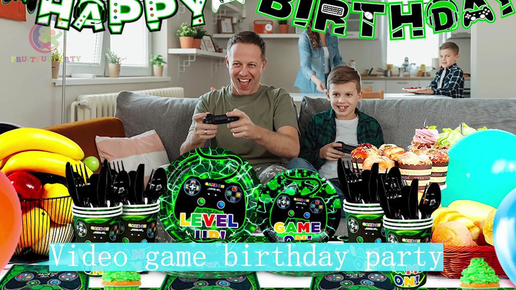 Video Game Party Supplies,128pcs Video Game Party Tableware Set-Video Game Plates and Napkins,Cups Table Cloth Banner etc Party Decorations Supplies