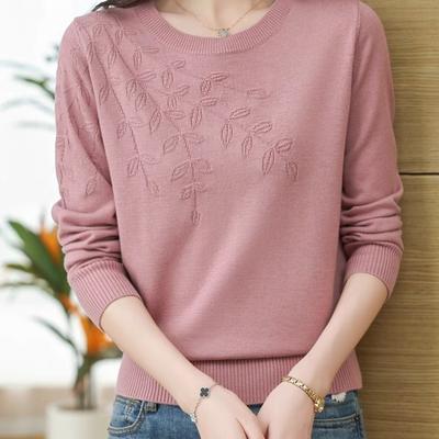 Jarný tenký pletený sveter s dlhým rukávom a vyšívaným dutým pulóvrom pre ženy, okrúhly výstrih, voľný základný sveter, top