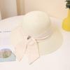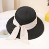 Women's Wide Brim Straw Sun Hat with Elegant Black Bowknot, Solid Color Beach Hat for Summer Travel, Classic Outdoor UV Protection