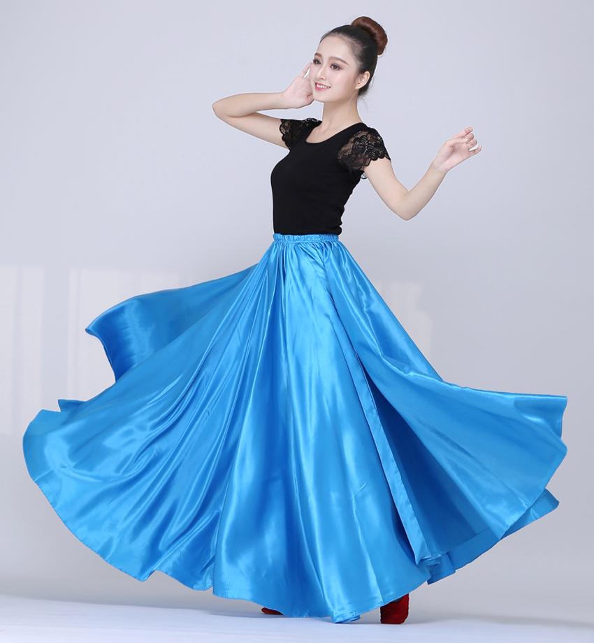 Sukňa na brušný tanec Jednofarebná Cigánska Ženy Dievča Španielska Flamenco Sukňa Saténová Šaty s veľkou sukňou Dospelí Deti Javisko 360-stupňová