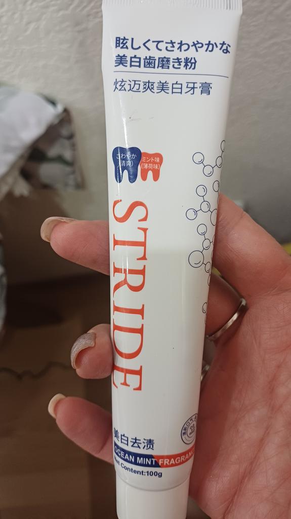 Zubná pasta Just Stride. Bez príchute. Stride si môžem kúpiť v supermarkete. Je to len obyčajná zubná pasta a trochu kriedová.
