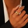 Kreatívne vodotesné prstene z nehrdzavejúcej ocele s pozláteným 18k zlatom so srdcom pre ženy, moderné duté šperky s kladivkovým vzorom