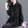 Black Shirt Women's Long Sleeved Plus Size Patchwork Mid-length Shirt Women's Casual Loose T-shirt