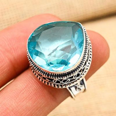 Blue Topaz 925 Sterling Silver Ring V5949, Blue Ring, Oval Ring, Valentin's Day Gift, Gift For Her, Birthday Gift, Handmade Jewelry, Silver Jewelry, U