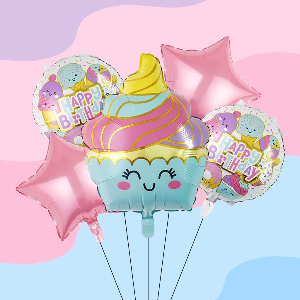 5pcs Macaron Ice Cream Rainbow Candy Balloons, Sweet Hawaiian Luau for Cow Day, Baby Shower, Wedding Decoration Supplies