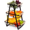 3 Tier Countertop Fruit Basket Bread Bowl with Wooden Top for Kitchen,Stackable Vegetable Onion Storage Wire Basket with Hangers
