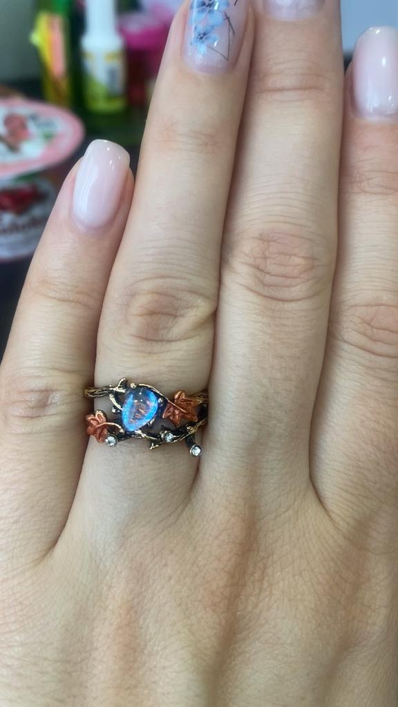 Vintage starožitný zlatý prsteň s vetvičkou javorového listu a mesačným kameňom pre ženy a dievčatá, ľahký luxusný prsteň, šperky, doplnky, darčeky k výročiu