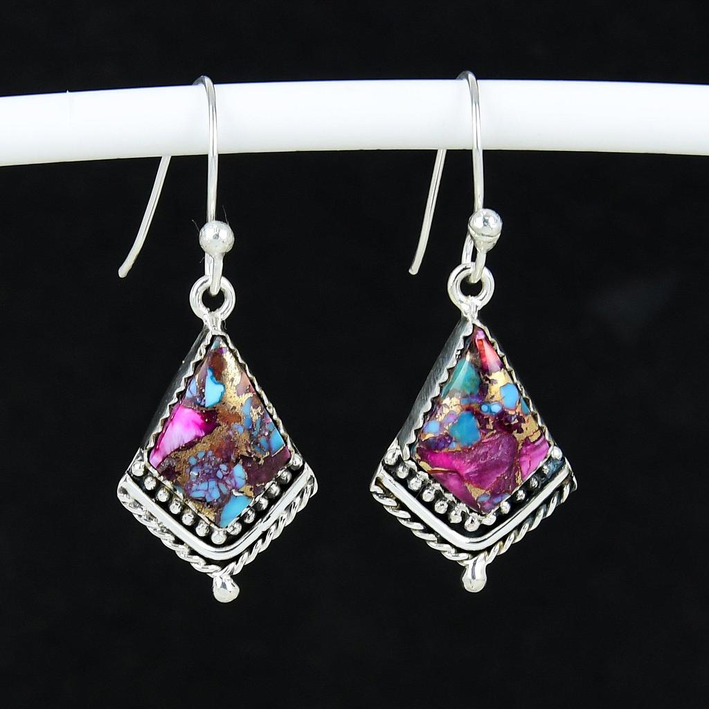 Natural Purple King Spiny Oyster Turquoise Gemstone Antique Earrings 925 Sterling Silver Earring, Boho Silver Jewelry Dangle Earrings, Gifts