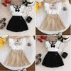 Sweet Fashion Set for Girls Summer Children Elegant Printed Halter Top Cake Skirt with Hat Three-piece Set