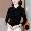 New Chinese Style Buckle Plus Velvet Autumn and Winter Base Shirt for Women Black Shirt T-shirt Warm Flocking Mesh Mother Top