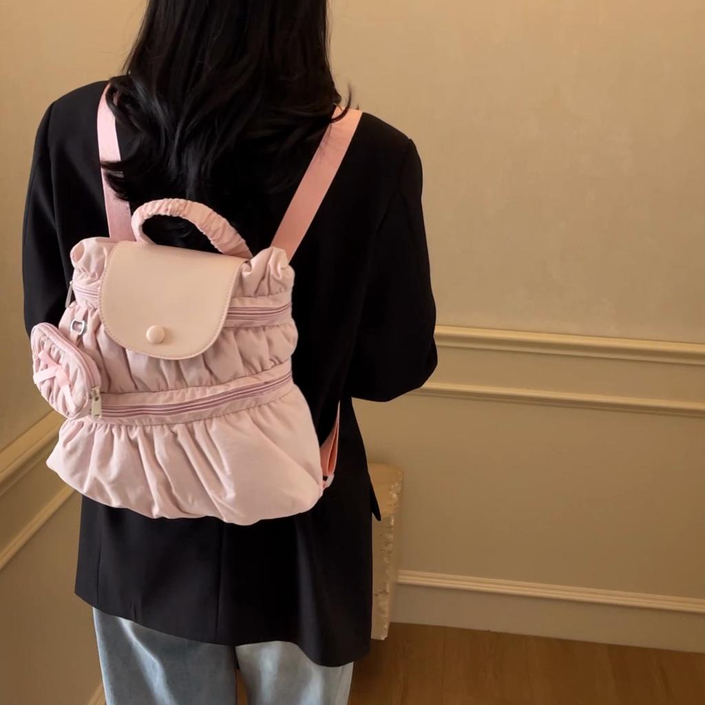 Solid Color Backpack Women's Pleated Handbag with Coin Purse