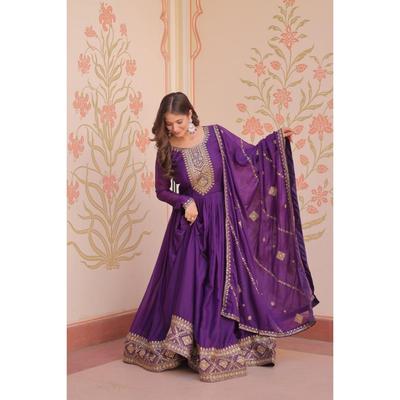 Želané dámske plne rozšírené šaty vyrobené z hviezdnych georgette látok a dizajnerskej vyšívanej dupaty s atraktívnym čipkovaným lemom, FARBA:- 4