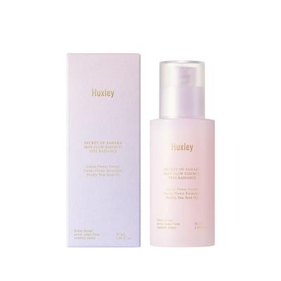 The Huxley Skin Glow Essence Vita Radiance (serum) is based on cactus extract and seed oil, providing deep moisture and nutrients to dry skin. This essence helps to achieve a transparent, bright, and glowing complexion. It is suitable for sensitive, normal, and dry skin types.