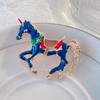 Štýlová smaltovaná brošňa s koňom: Jedinečný dizajn s kvapkami oleja, všestranný zvierací špendlík na obleky a svetre