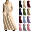 New Summer Short-sleeved V-neck Loose Dress 3-color Shirt Long Skirt