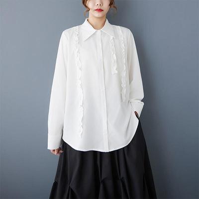 Móda pre plnoštíhle ženy v kórejskom štýle, jarná, jesenná, dámska ležérna voľná blúzka s klasickým golierom, biela, čierna, s prešívaním, štýlový streetový odev, asymetrická blúzka