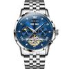 OLEVS Automatické hodinky Mechanické Kostra Diamantové Populárne Hviezdna obloha Vodotesné Dátum Svetelné Hodinky pre Mužov Nerezová oceľ Štýlová Značka Modré Pánske