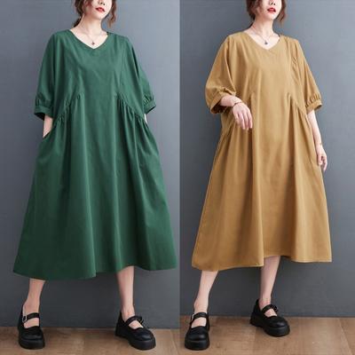 DIMANAF 2025 Women Plus Size Spring Summer Dress Casual Dress Basic Vintage Loose Floral Printing Long Sleeve Maxi