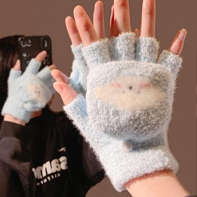 1 Pár Roztomilé Palčiaky Sklopné Polprstové Rukavice Pre Ženy Dievčatá Zimné Mäkké Teplé Hrubé Rukavice Študentské Odolné Proti Chladu Písacie Rukavice