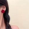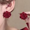 Autumn Winter Vintage Fashion Simple Cute Wine Red Velvet Rose Flower Stud Earrings for Women Elegant Jewelry Daily Accessories