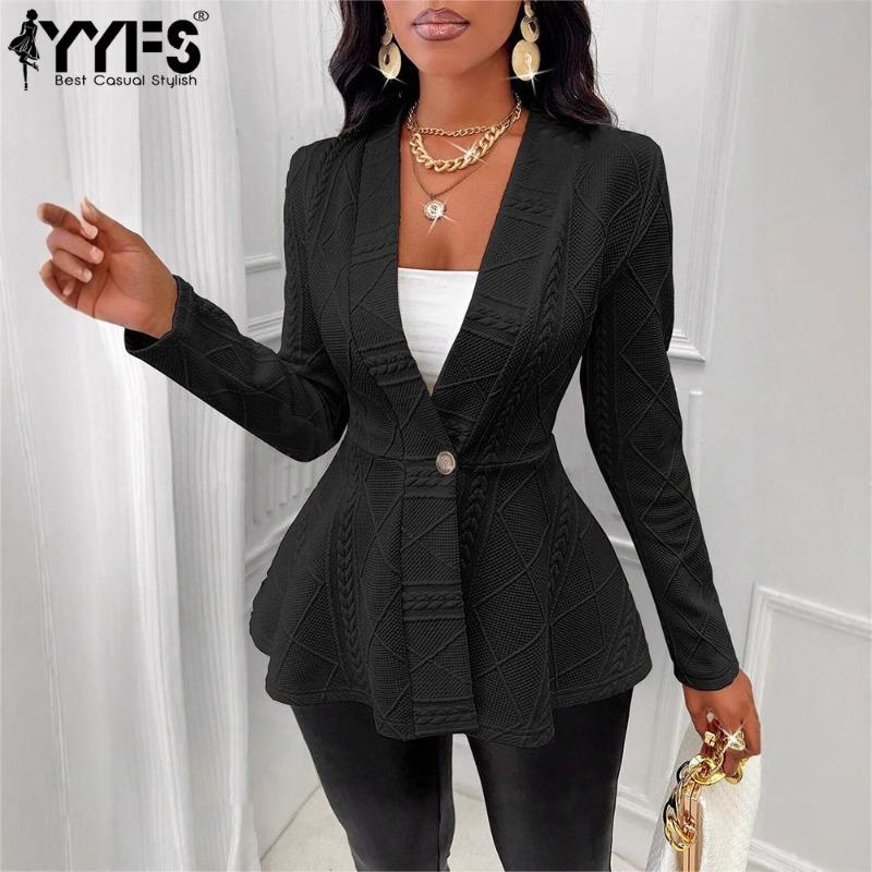 YYFS Dámska móda Neformálna jednofarebná potlač Jeseň Zima Bundy a kabáty s dlhým rukávom do V s výstrihom