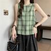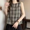 ZANZEA Women Summer Round Neck Sleeveless Grid Print Tank Tops