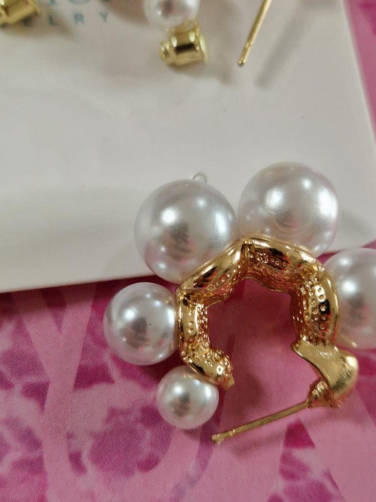 Korean retro C-shaped large pearl stud earrings, niche design sense irregular pearl earrings temperament cold wind earrings