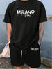 Two-piece Milano Print Men's Set Summer Casual Everyday Men's Short-sleeved T-shirt Outdoor Street Men Fashion Sports Shorts