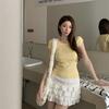 Yellow Round Neck Knitted T-shirt with Summer Temperament Slim Fit Front Shoulder Base Versatile and Simple Top